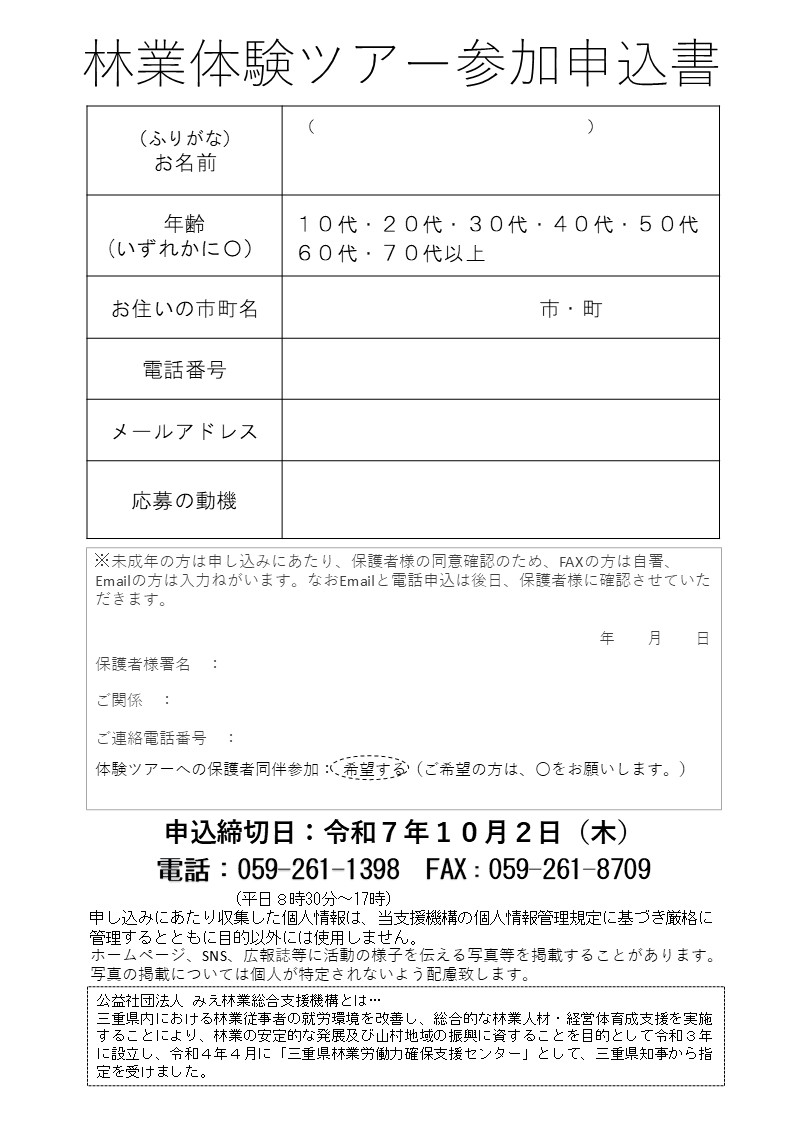 林業体験ツアー(令和7年10月11日(土))の参加者を募集します