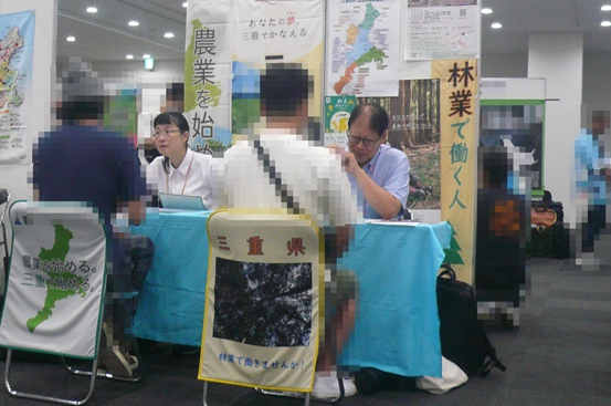 令和7年8月30日(土)、当機構は三重県農林水産支援センターと合同で「マイナビ農林水産FEST名古屋」に出展し、三重県の林業に関する就業相談を行いました。