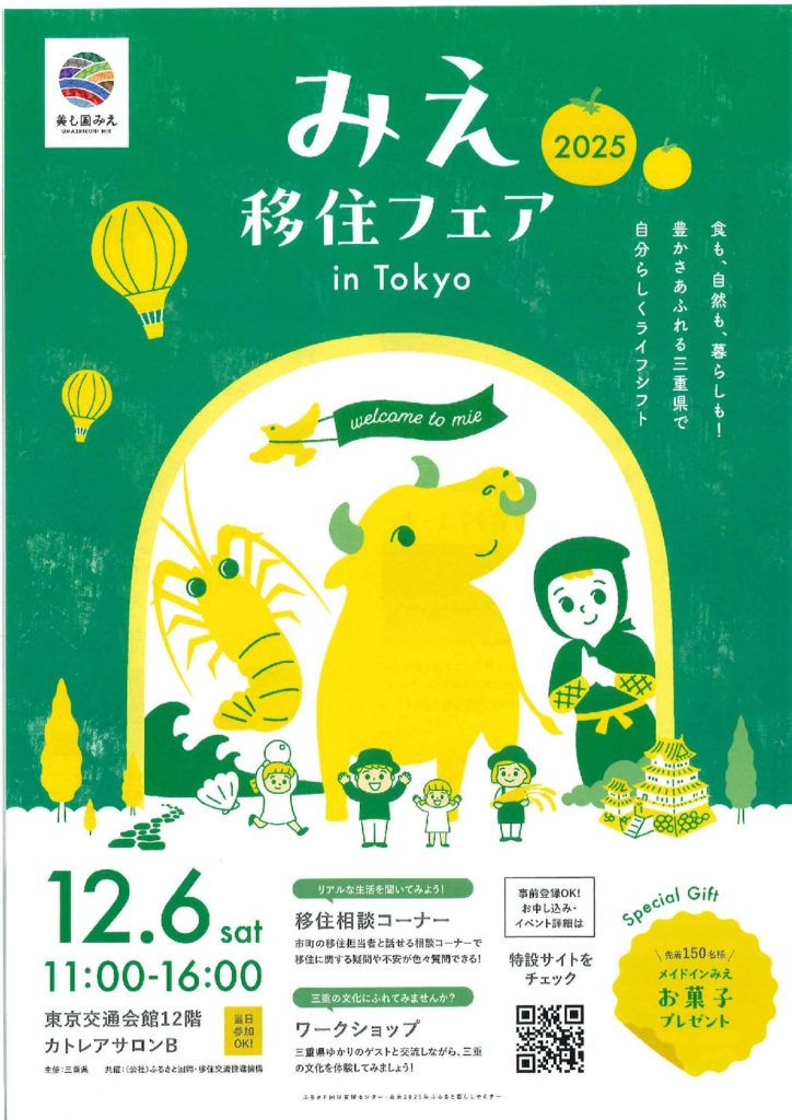 令和7年12月6日(土)午前11時より、みえ移住フェアin東京に出展します。