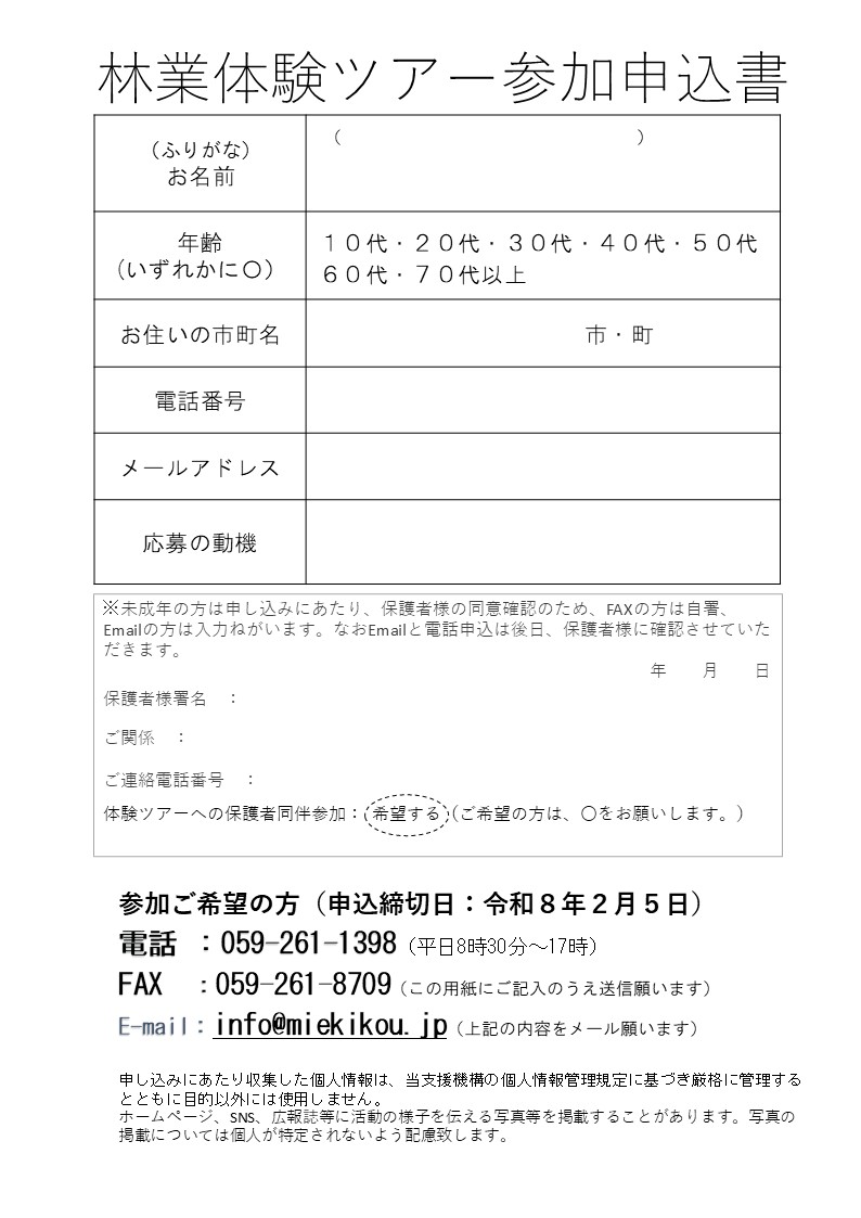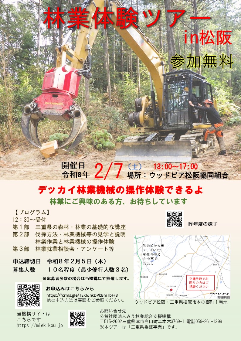林業体験ツアーin松阪(令和8年2月7日(土))の参加者を募集します
