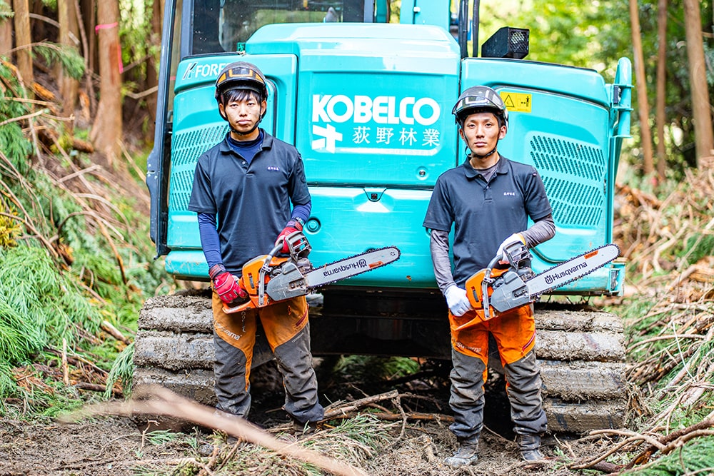 荻野林業の創業時からのメンバーである紀平悠輔さん、高校のクラスメートだった荻野さんとは、まさに盟友ともいえる関係です。